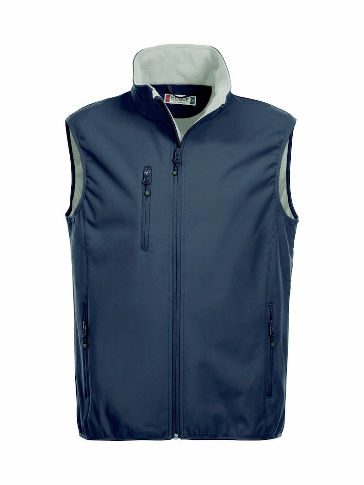 Gilet softshell. Tessuto triplo strato morbido ed elasticizzato. Tre tasche esterne con zip. Due taschini interni. Fondo e giromanica con profilo elastico.